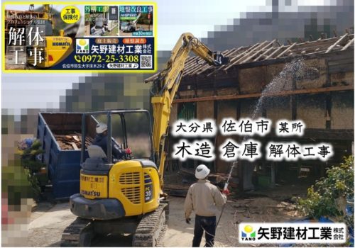 矢野建材工業株式会社【木造倉庫解体工事】 大分県 佐伯市 某所 〒876-0103 大分県佐伯市弥生大字床木2…